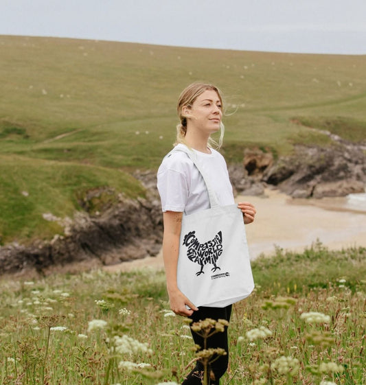 Our products are printed to order and made from organic cotton using renewable energy. And what's more, each item is designed to be sent back when worn out so new products can be made from the material that's recovered. So not only are you helping farmed animals but you're also helping the planet too. All prices include postage and packaging.