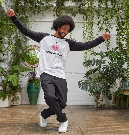 Our products are printed to order and made from organic cotton using renewable energy. And what's more, each item is designed to be sent back when worn out so new products can be made from the material that's recovered. So not only are you helping farmed animals but you're also helping the planet too. All prices include postage and packaging.